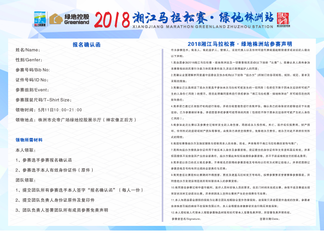注:参赛者如无法至现场领取委托他人代领的,代领人需携带本人身份证原件和复印件及参赛者身份证原件复印件、报名确认函到物品发放处领取。