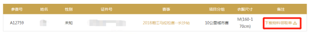 (登录赛事官网点击“报名查询&报名确认函下载”或微信公众号后台点击“物资领取”,点击报名确认函下载,自行核对信息,下载并打印)