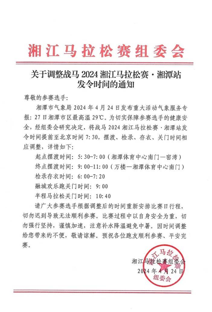 重要通知!湘马湘潭站发令时间调整为7:30!