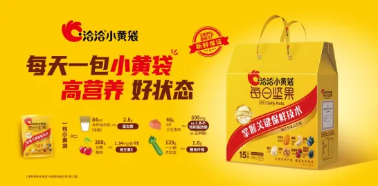 一直以来,洽洽小黄袋受到了众多消费者的喜爱,不仅因为产品足够新鲜,也因为坚果含有蛋白质、维生素、不饱和脂肪酸等多种对人体有益的营养元素。