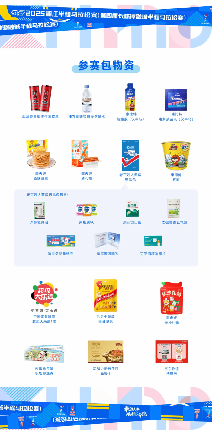 参赛物资中包含号码布、参赛服装、参赛手环(需现场绑定)、参赛指南、参赛包及其他物品。