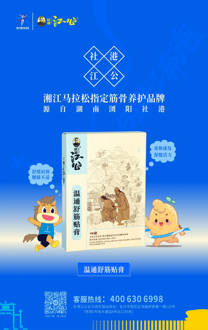 今年,社港江公团队带着满满的诚意与关怀,携最新的温通舒筋贴膏,再次亮相湘江马拉松的荣耀终点,旨在为跑者们在关键时刻送上贴心的关怀与支持。在此,社港江公预祝所有跑者能够安全、顺利地跑完全程,享受马拉松带来的快乐与挑战。