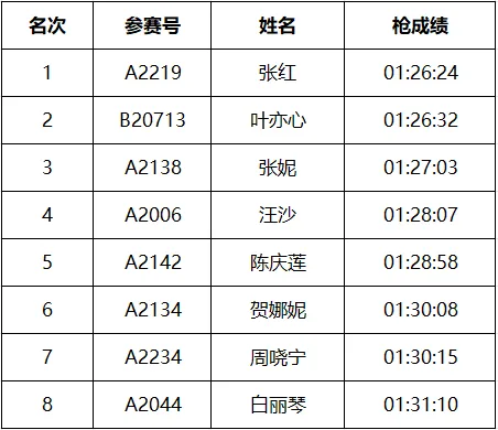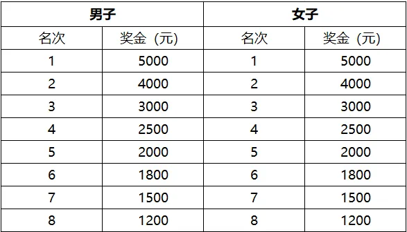半程马拉松前八名以枪声成绩录取,发放奖金,奖励标准如下: