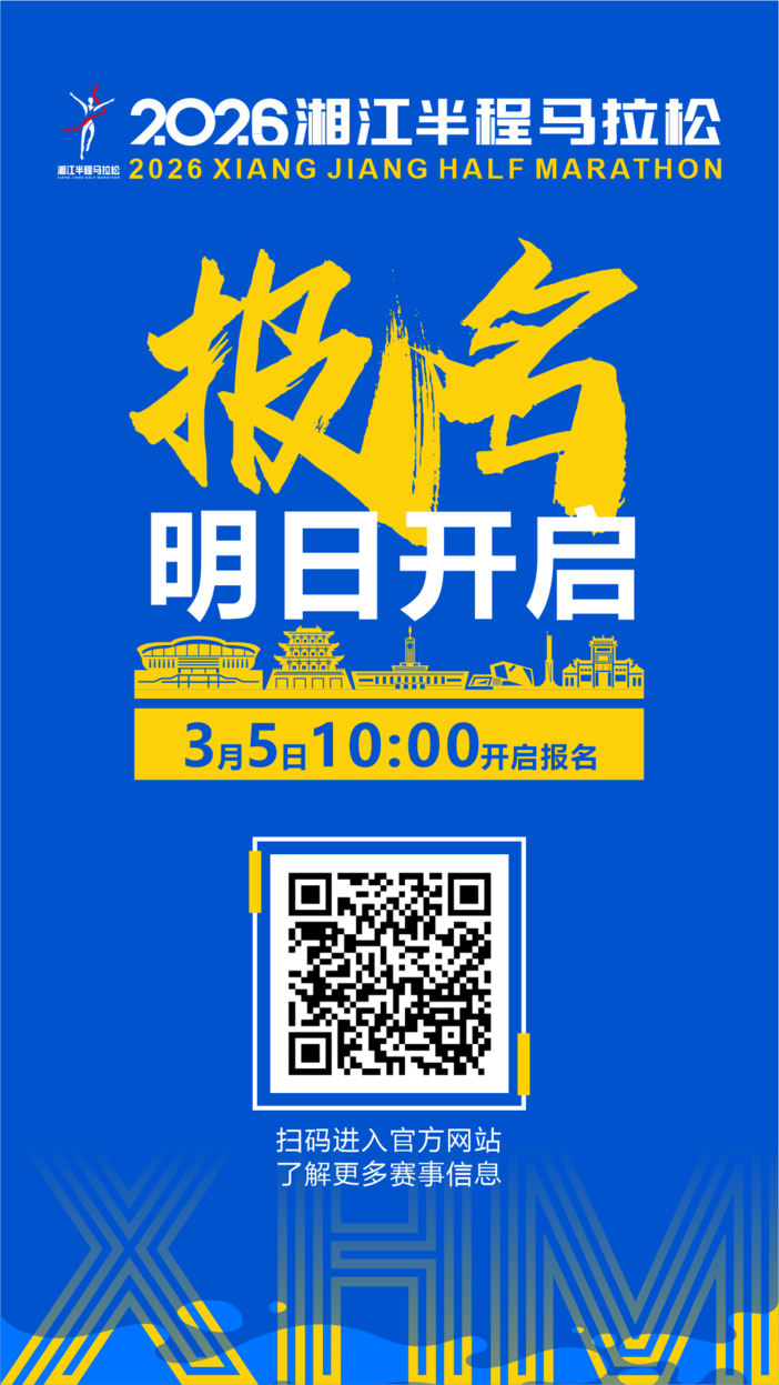 各位跑者,2026湘江半程马拉松报名从3月5日10:00持续至3月12日10:00,期间内的每一天都可以报名,大家可根据自身时间安排,合理规划报名事宜。