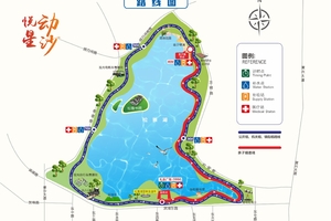 10KM健康跑:礼乐广场(起点)出发——向东沿环湖路——礼乐广场(终点),全程约10公里。